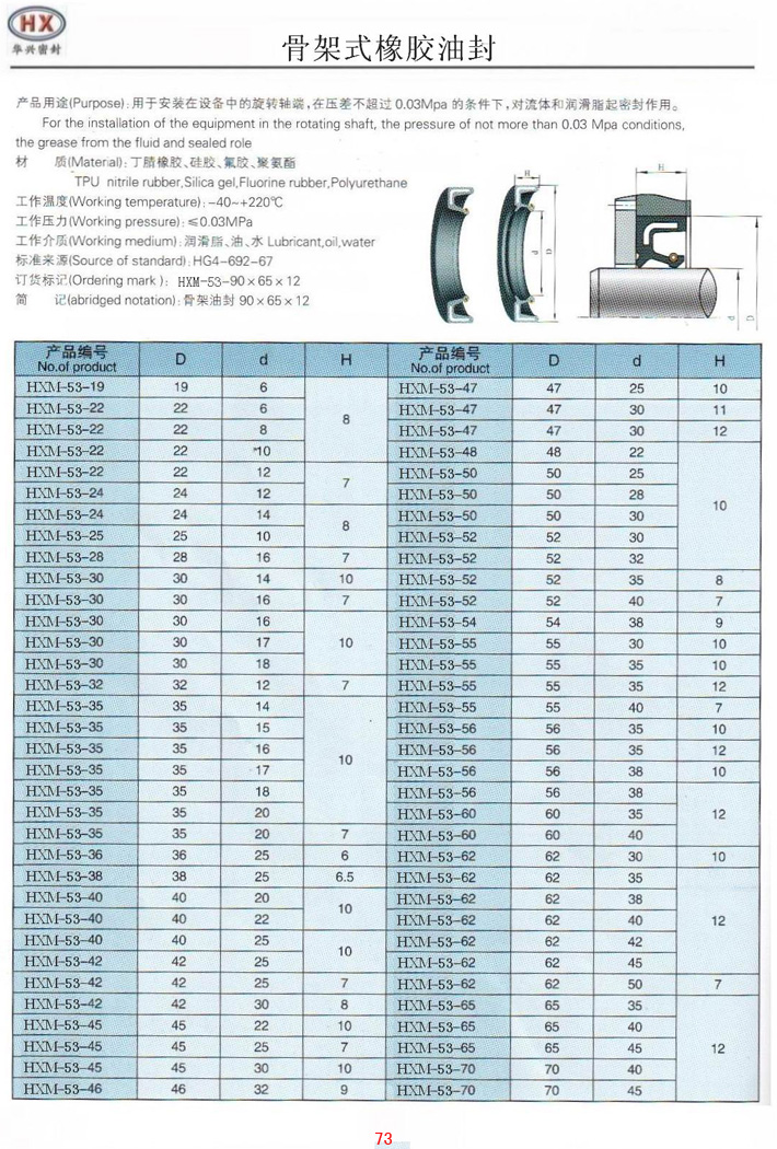 用途:旋轉(zhuǎn)軸密封材質(zhì):聚氨酯TPU丁腈橡膠,氟膠標(biāo)準(zhǔn):HG4-692-67頁碼:73