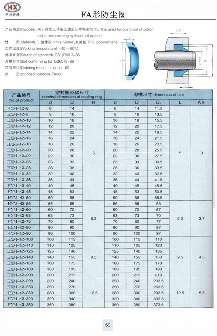 用途:活塞桿防塵 材質(zhì):聚氨酯 TPU 丁腈橡膠 標(biāo)準(zhǔn):GB10708.3-89 頁碼:62