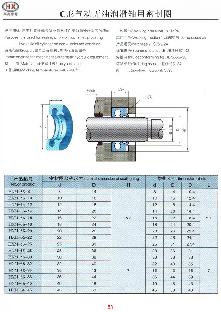 用途:氣缸活塞桿密封與防塵 材質(zhì):聚氨酯(TPU) 標(biāo)準(zhǔn):JB/T6657-93 頁碼:53