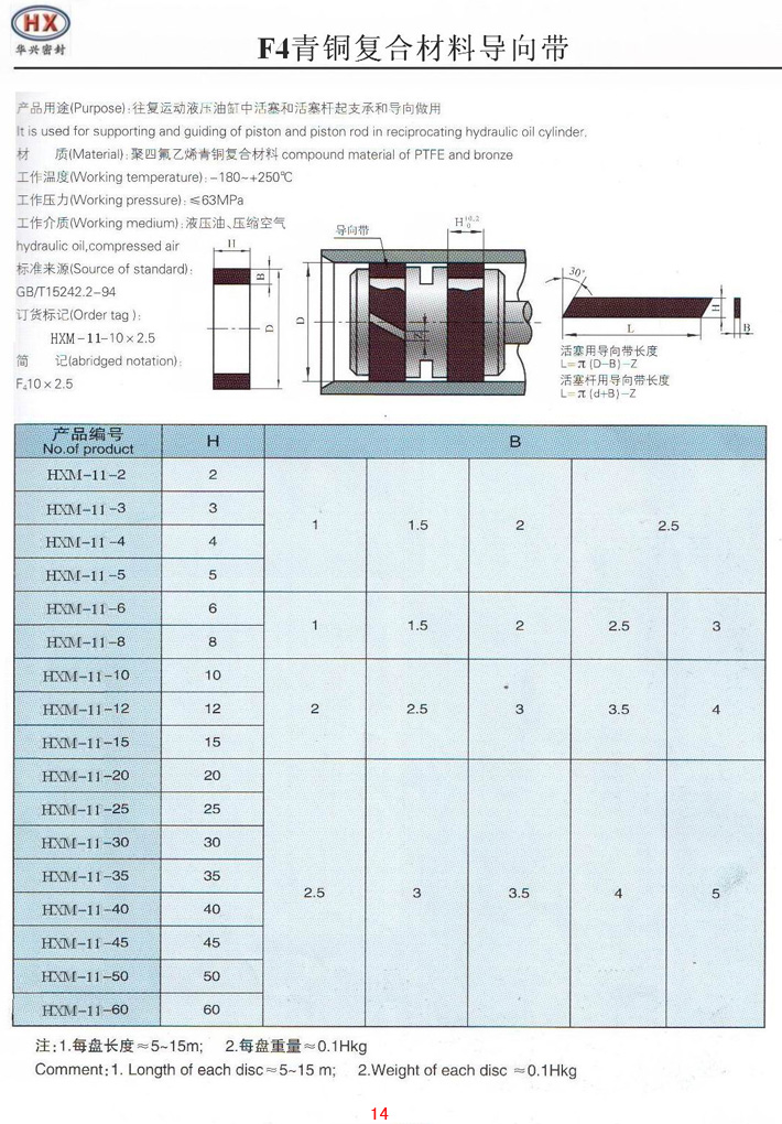 用途:活塞、活塞桿支承與導向 材質:聚四氟乙烯青銅復合材料 標準:GB/T15242.1-94 頁碼:14